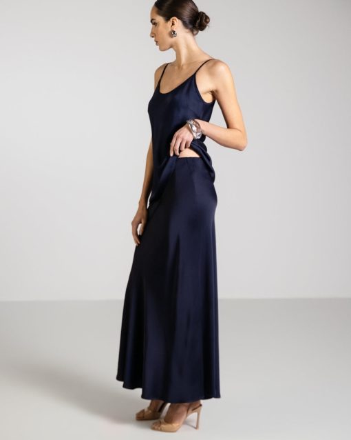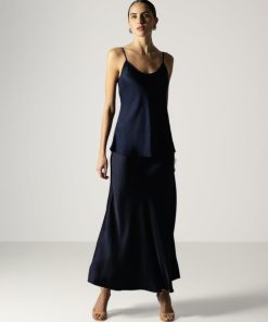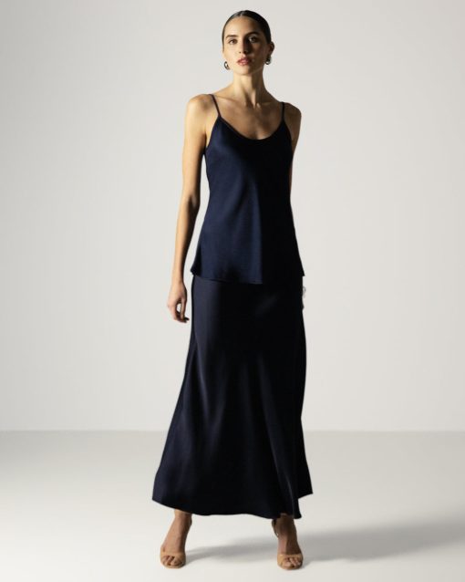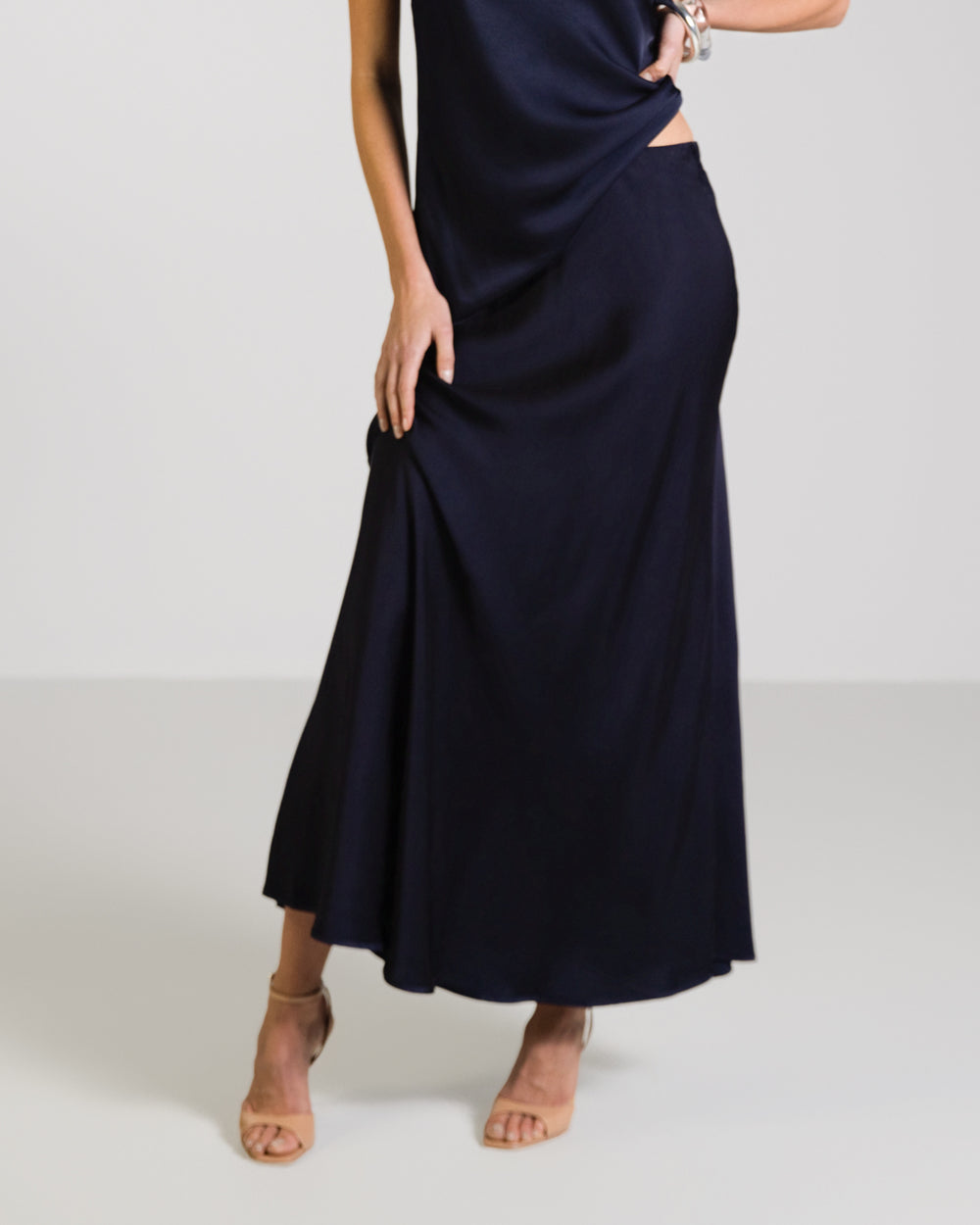The flattering, bias cut silhouette features an elastic waist for comfort. The lustrous satin fabric flows beautifully, offering a graceful drape that moves with you. Versatile for all seasons, this satin skirt’s timeless design and fluid movement make it a staple piece to wear all year round.Model is 5’10.