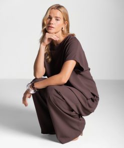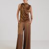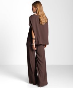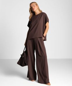JAKI Women’s Gabriella Pleated Elastic Waist Trousers | Espresso Brown