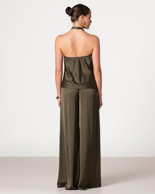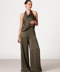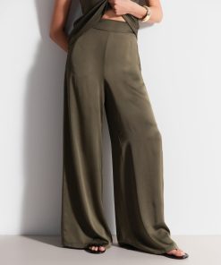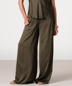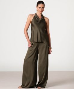 JAKI Women’s Giselle Elastic High Waist Satin Trousers | Khaki
