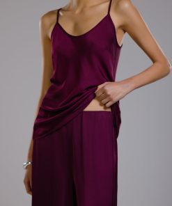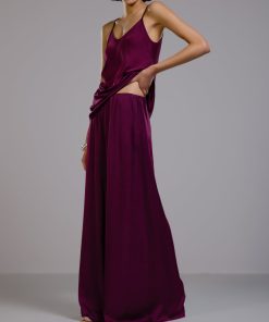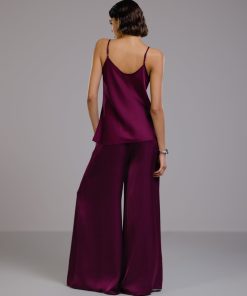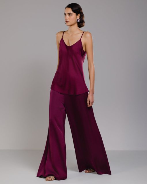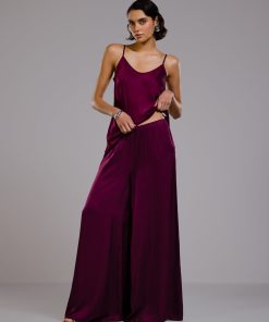 JAKI Women’s Helena Elastic Waist Satin Trousers | Burgundy