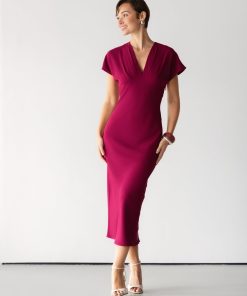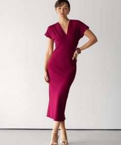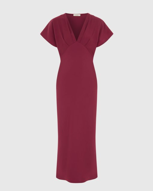 JAKI Women’s Juliette V Neck Dress | Burgundy